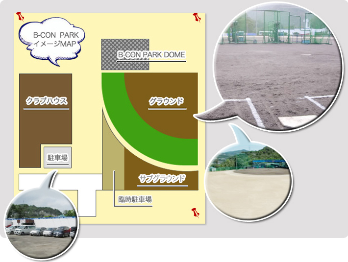 グラウンド内・クラブハウス・駐車場及び周辺の施設・備品等を破損された場合は、 速やかに受付に届け出るとともに現状回復してください。